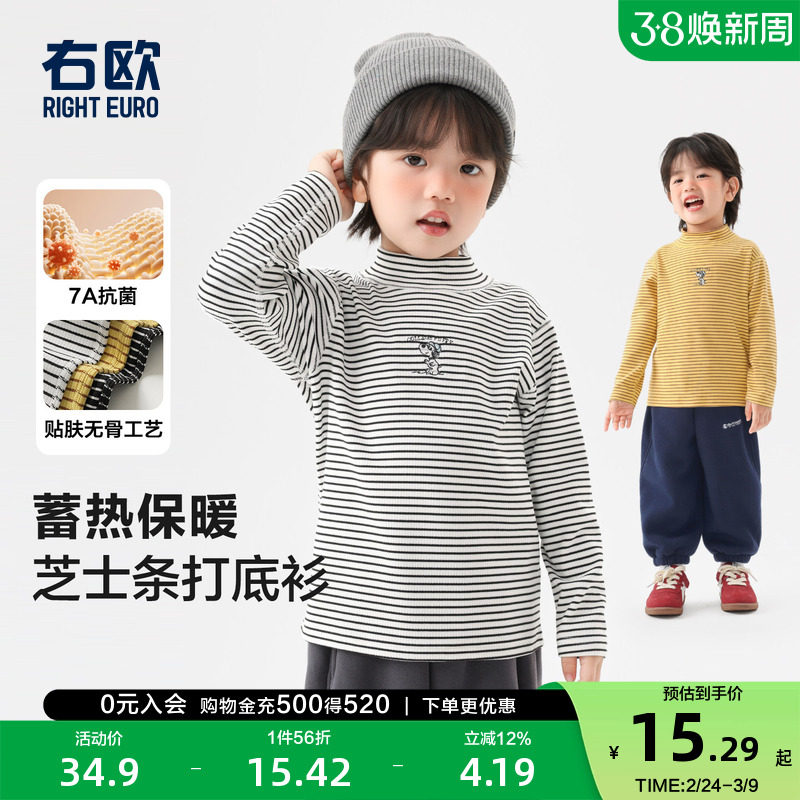 右欧男童女童条纹半高领打底衫秋冬季新款童装儿童基础款长袖T恤
