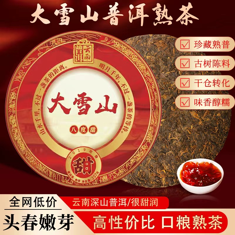 云南普洱茶熟茶茶饼宫廷七子饼茶茶叶357g精品古树陈年爆款老茶头