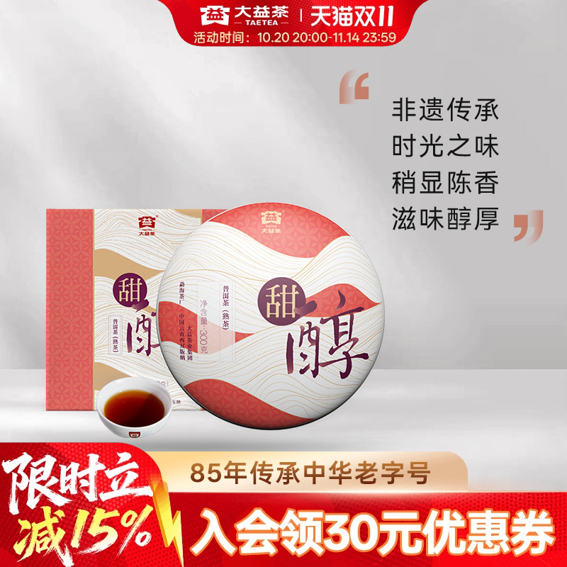大益普洱茶 甜醇普洱熟茶饼茶300g四年陈料云南勐海官方旗舰店