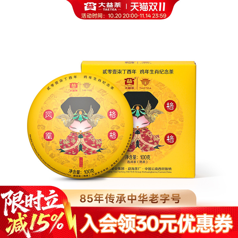大益普洱茶鸡年生肖茶凤凰格格100g熟茶饼茶云南勐海茶官方旗舰店