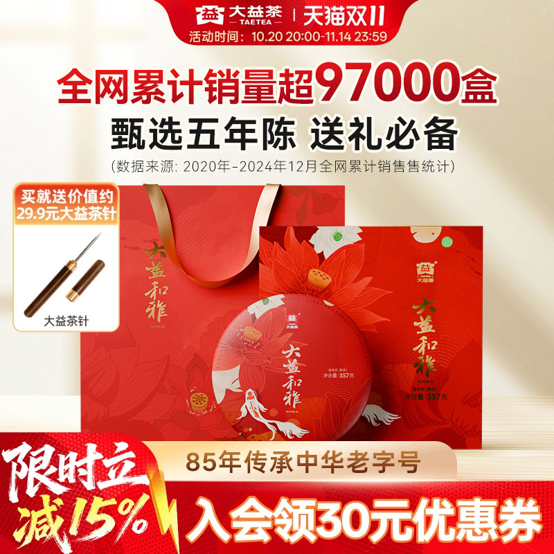 大益普洱和雅熟茶357g饼茶茶叶长辈礼赠礼盒送礼礼袋官方旗舰店