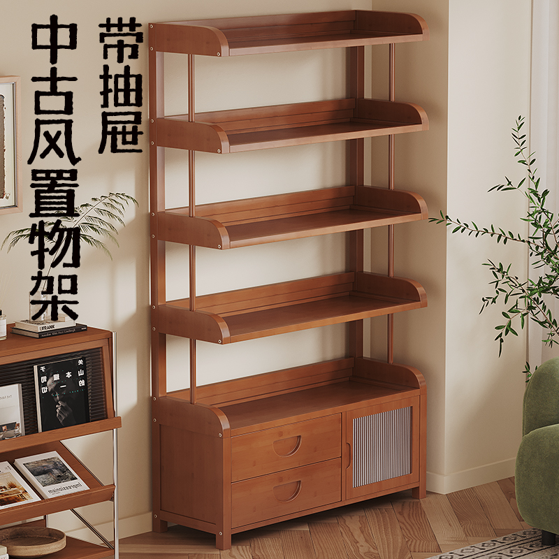 客厅轻奢高级感置物架多层收纳零食书架隔板沙发复古书柜落地立式