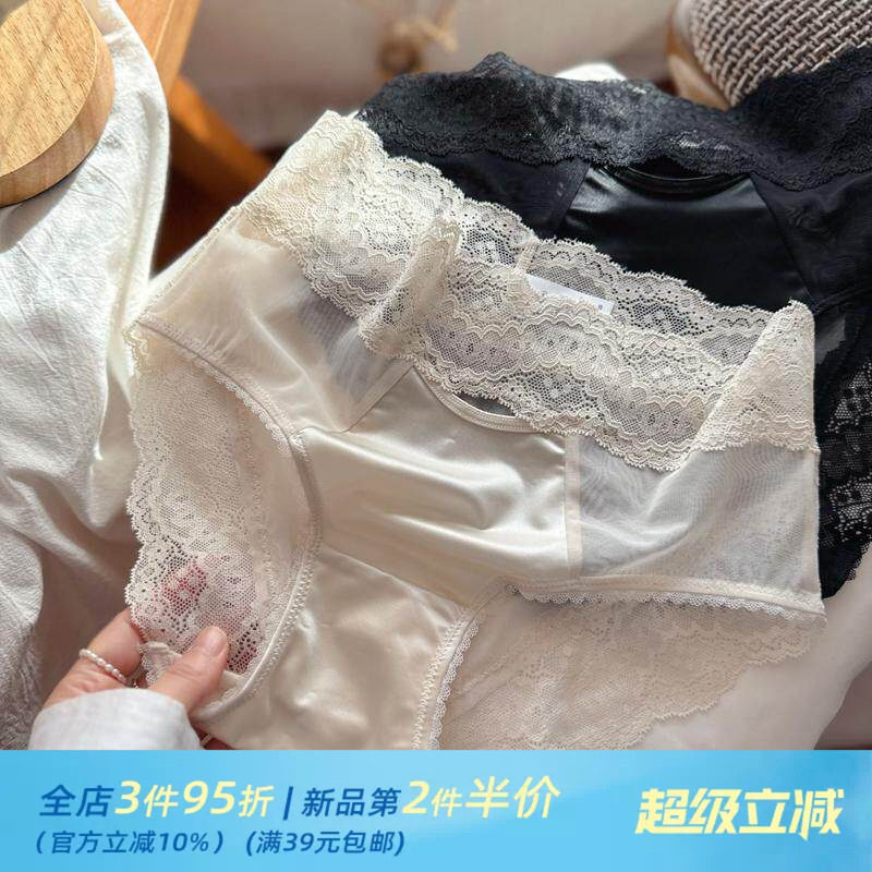 高级感◆法式蕾丝内裤女品质缎面珠光禁欲性感透明网纱纯棉裆透气