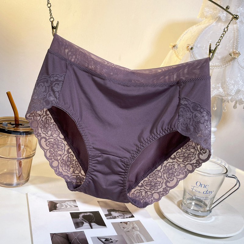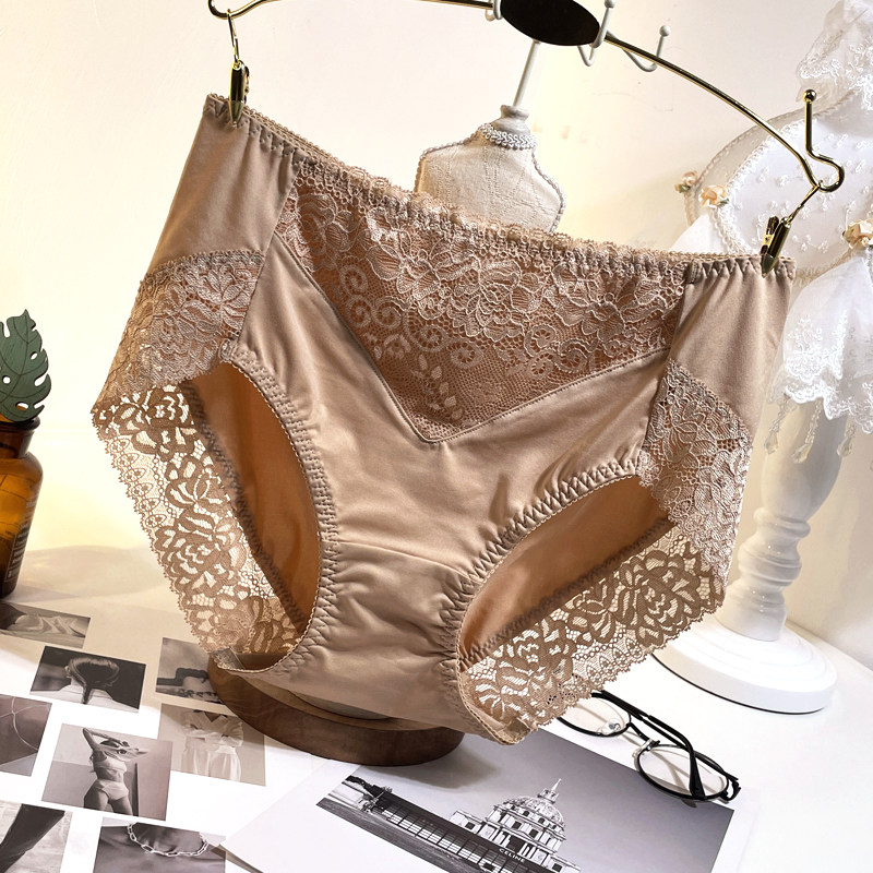 蕾丝性感内裤女高腰纯棉裆冰丝无痕大码胖mm薄款收腹牛奶丝三角裤