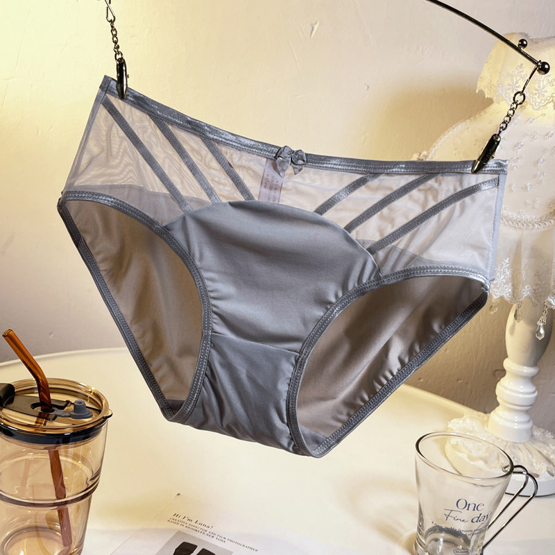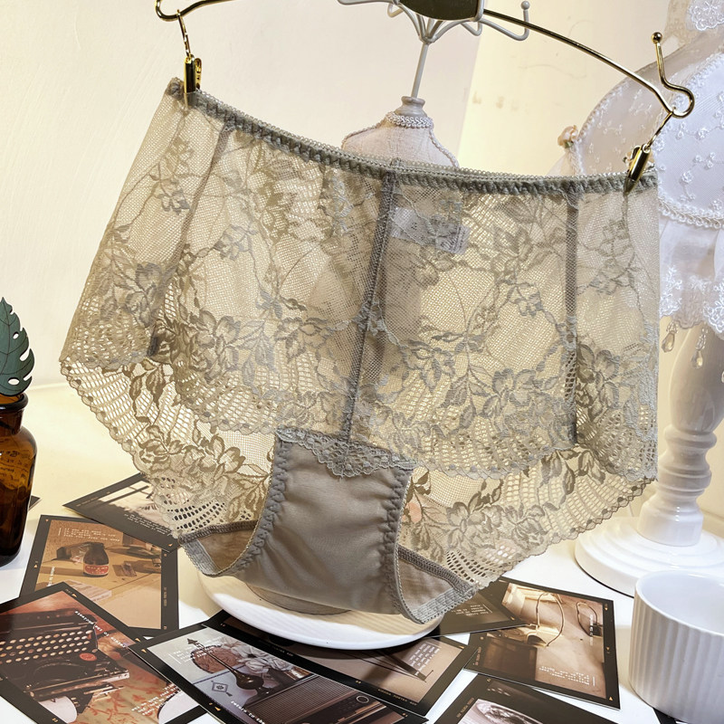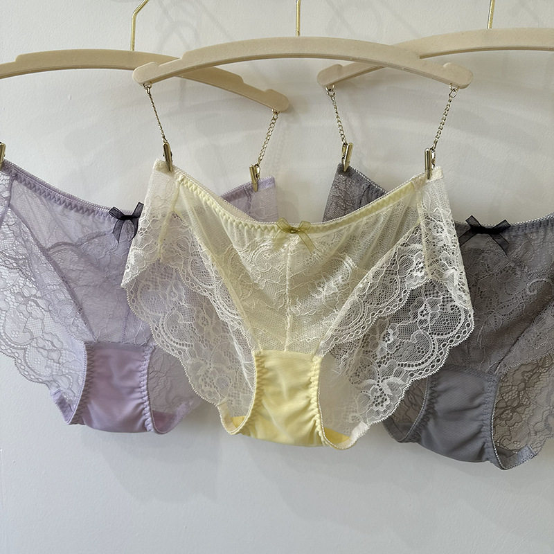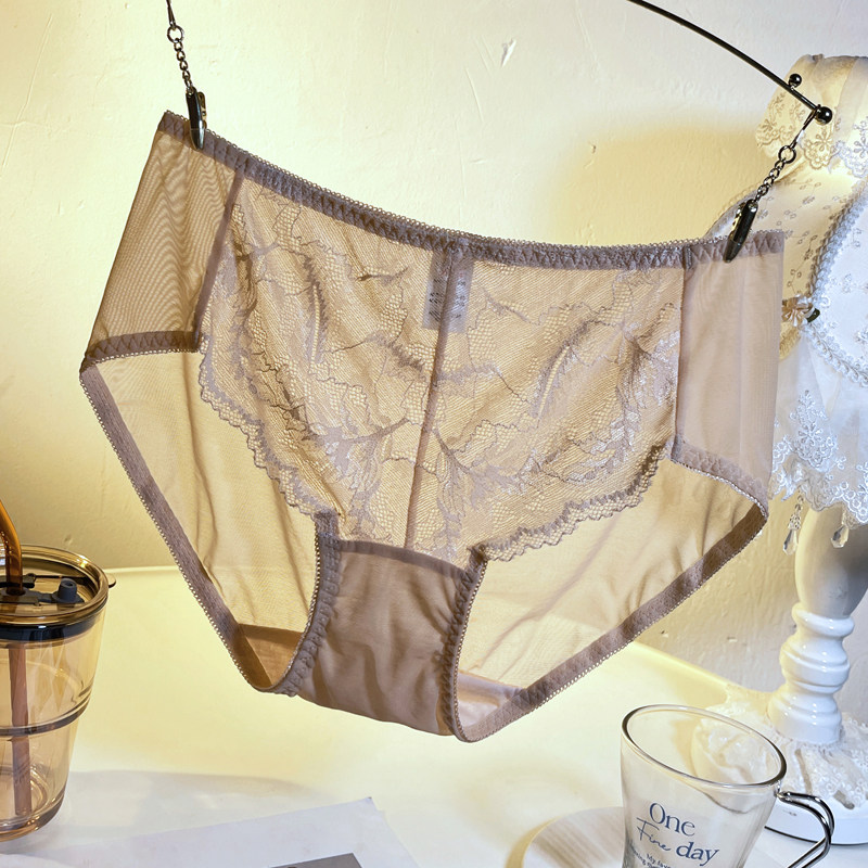冰丝内裤女士中腰性感蕾丝网纱透明镂空纯欲情调抗菌纯棉裆三角裤