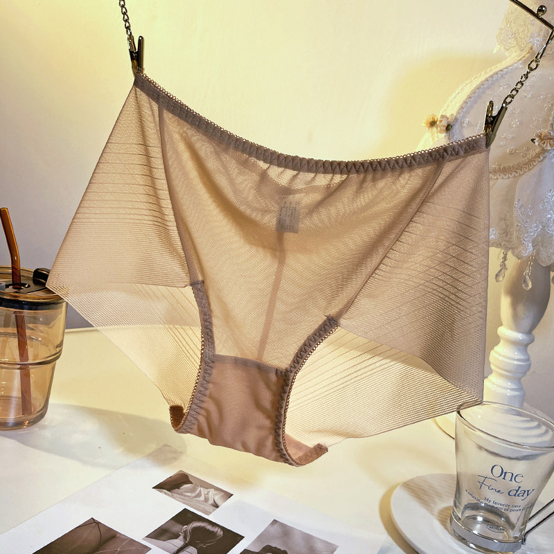 薄款冰丝内裤女低腰性感透明纯欲网纱无痕抗菌纯棉裆女生三角短裤