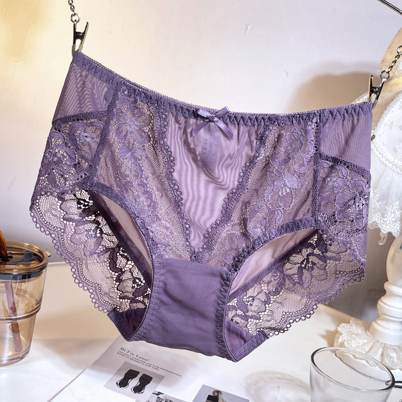 性感蕾丝内裤女士中高腰无痕透明网纱镂空抗菌纯棉裆大码三角底裤