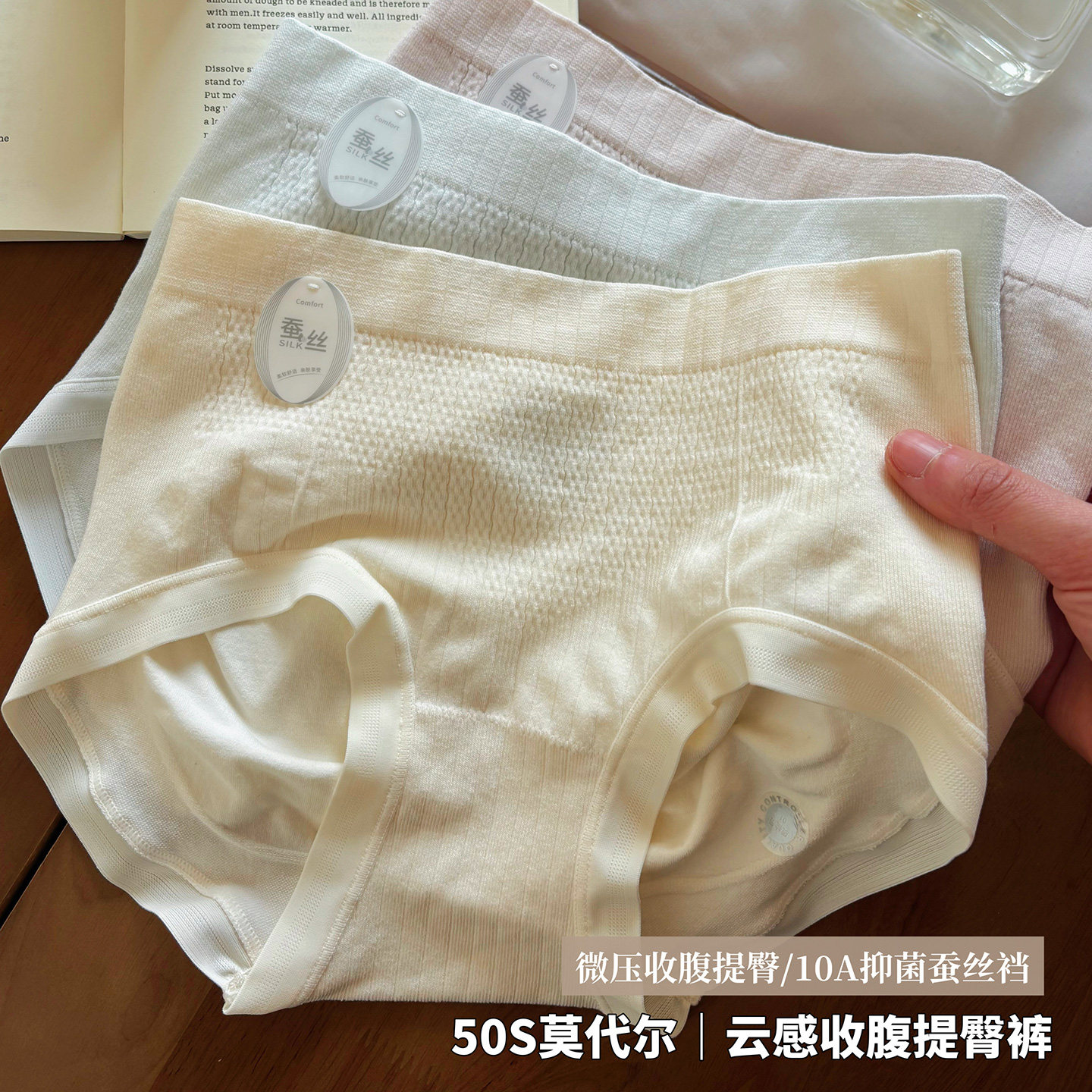 MTUN米糖高品质50支莫代尔收腹提臀无缝女士内裤桑蚕丝裆10A抗菌