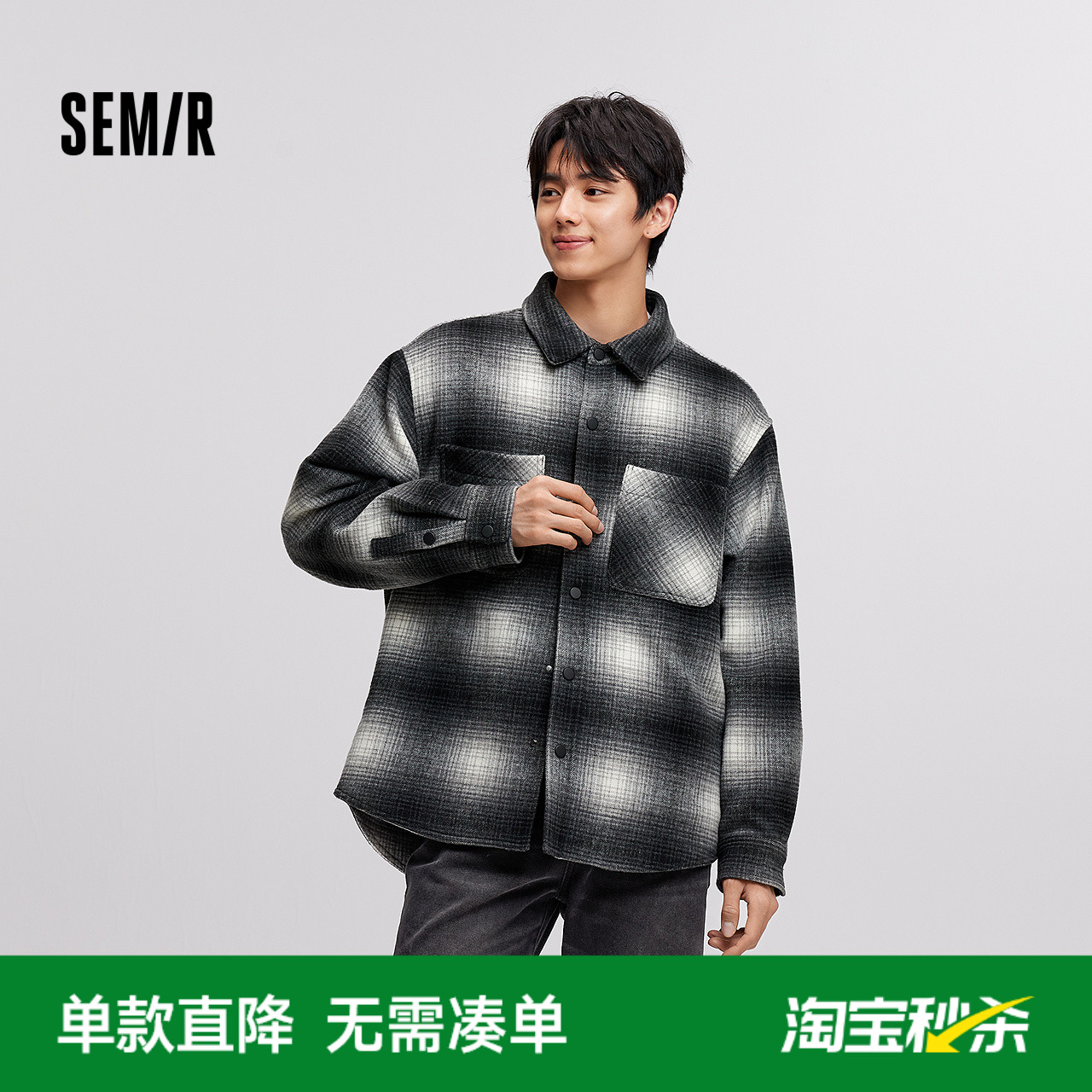 森马毛呢外套男冬季加绒格纹夹克经典复古百搭小宽松廓形翻领上衣