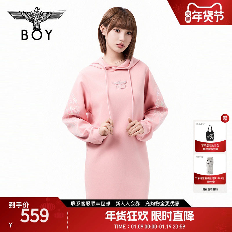 【流光镜影】BOYLONDON春季女士连衣裙休闲连帽长袖卫衣裙W17907