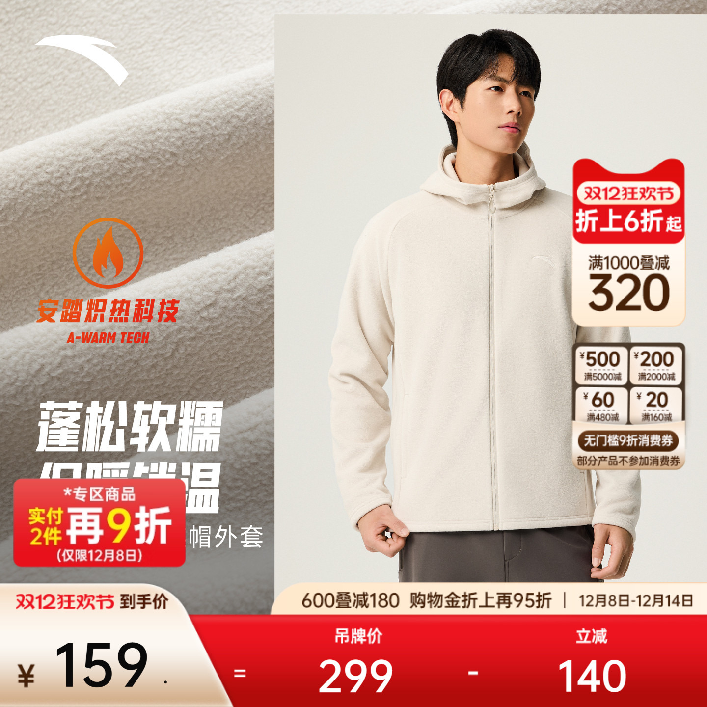 安踏摇粒绒户外抓绒衣男女2025冬季新款连帽外套冲锋衣内胆夹克