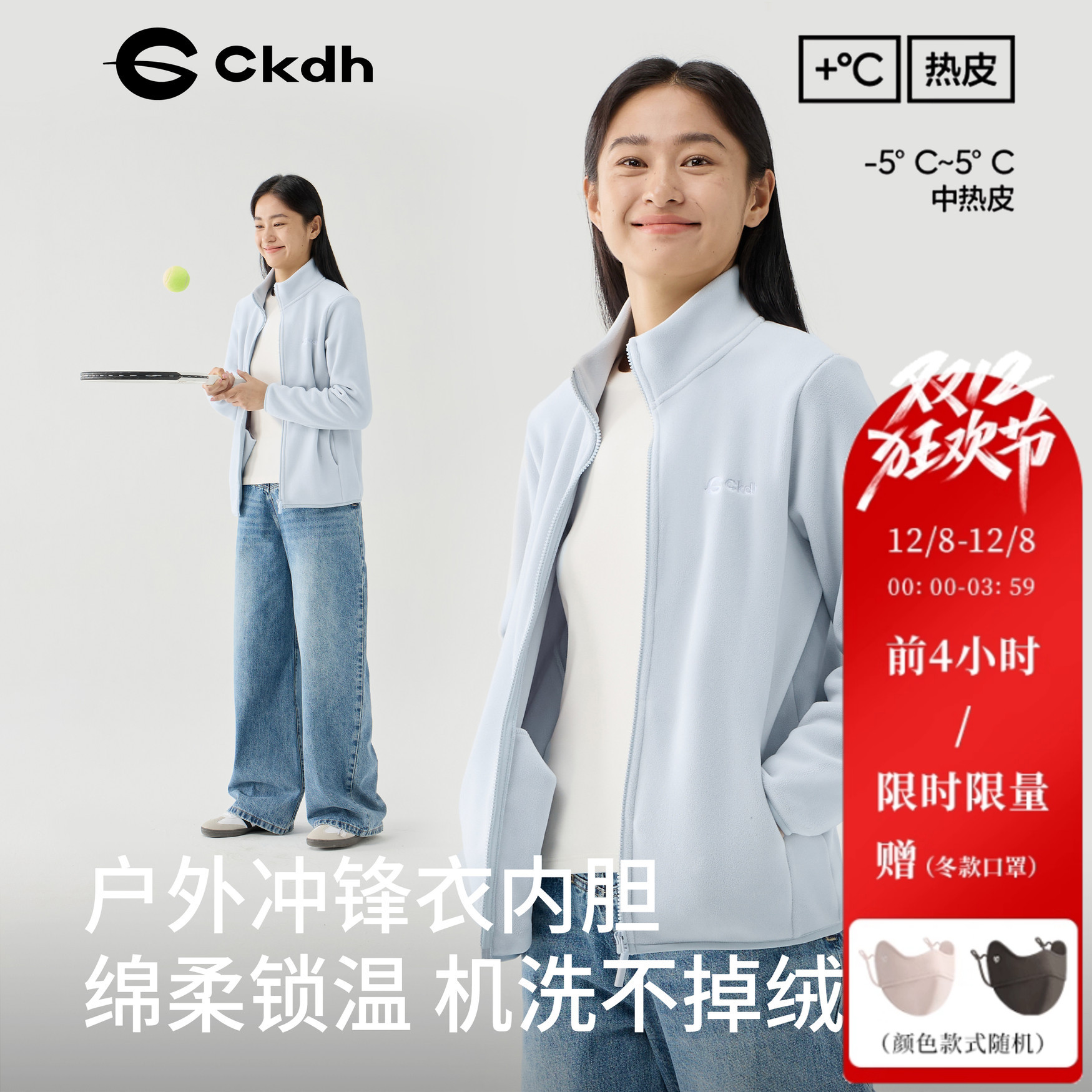 CKDH冲锋衣内胆女双面薄绒秋冬2025新款户外休闲抓绒衣摇粒绒外套