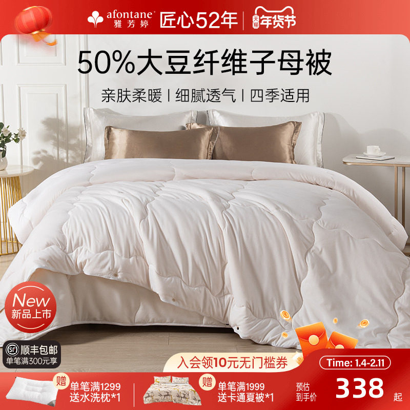 雅芳婷50%大豆纤维被子母被子被芯二合一春秋被四季通用大豆被子