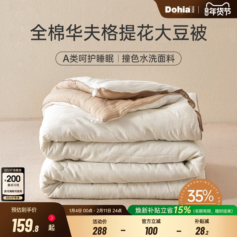 多喜爱春秋被全棉大豆纤维被华夫格提花水洗被芯冬被春秋子母被子