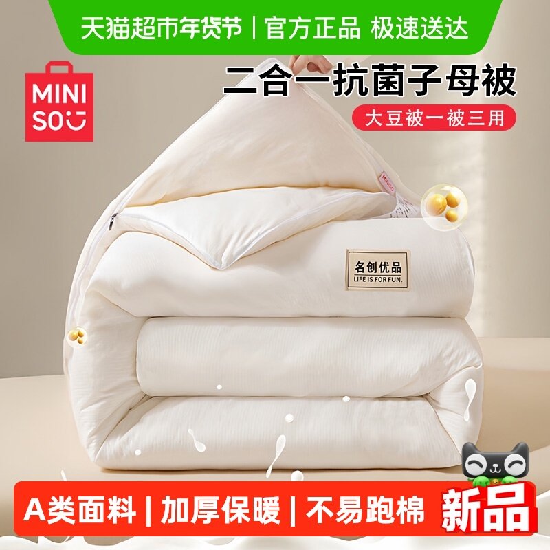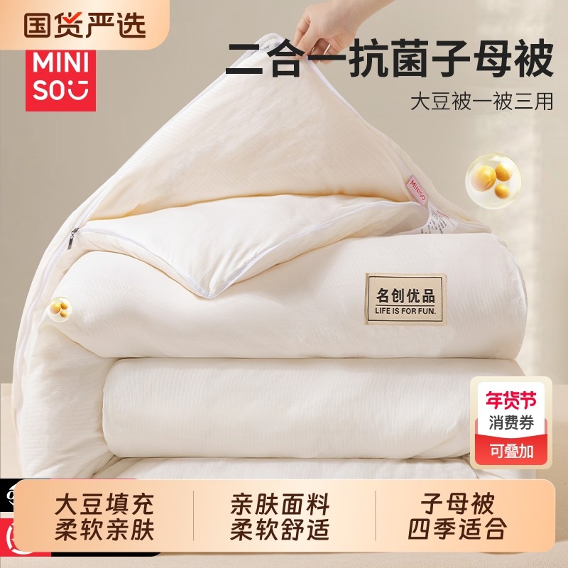 名创优品大豆纤维子母被子被芯二合一拉链款四季通用加厚保暖冬被