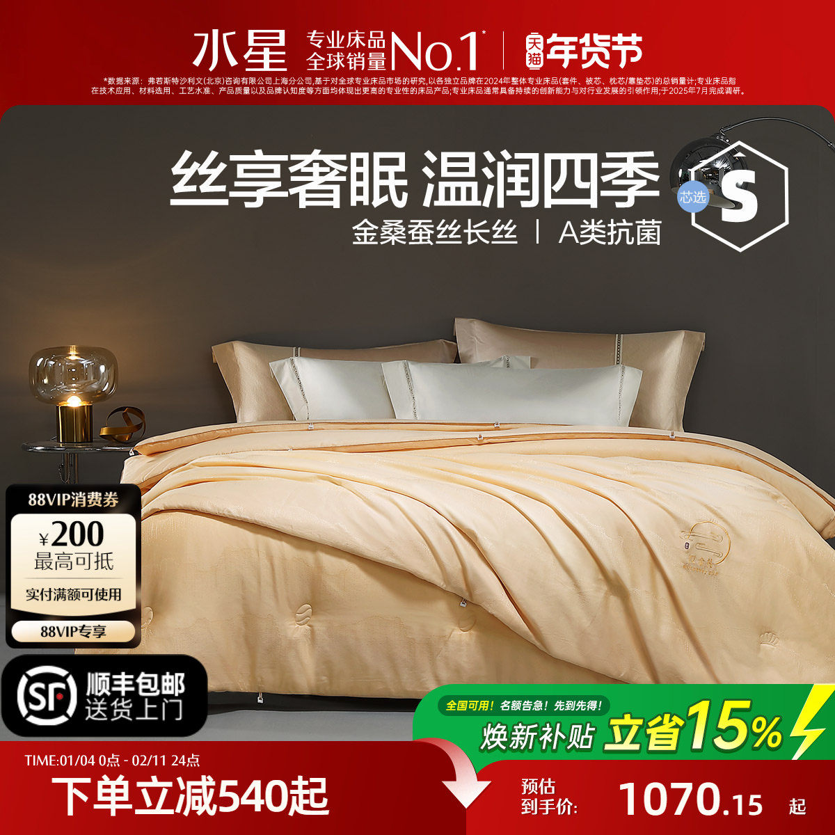 水星家纺金蚕丝被抗菌二合一子母被子被芯冬被春秋被新年年货礼物