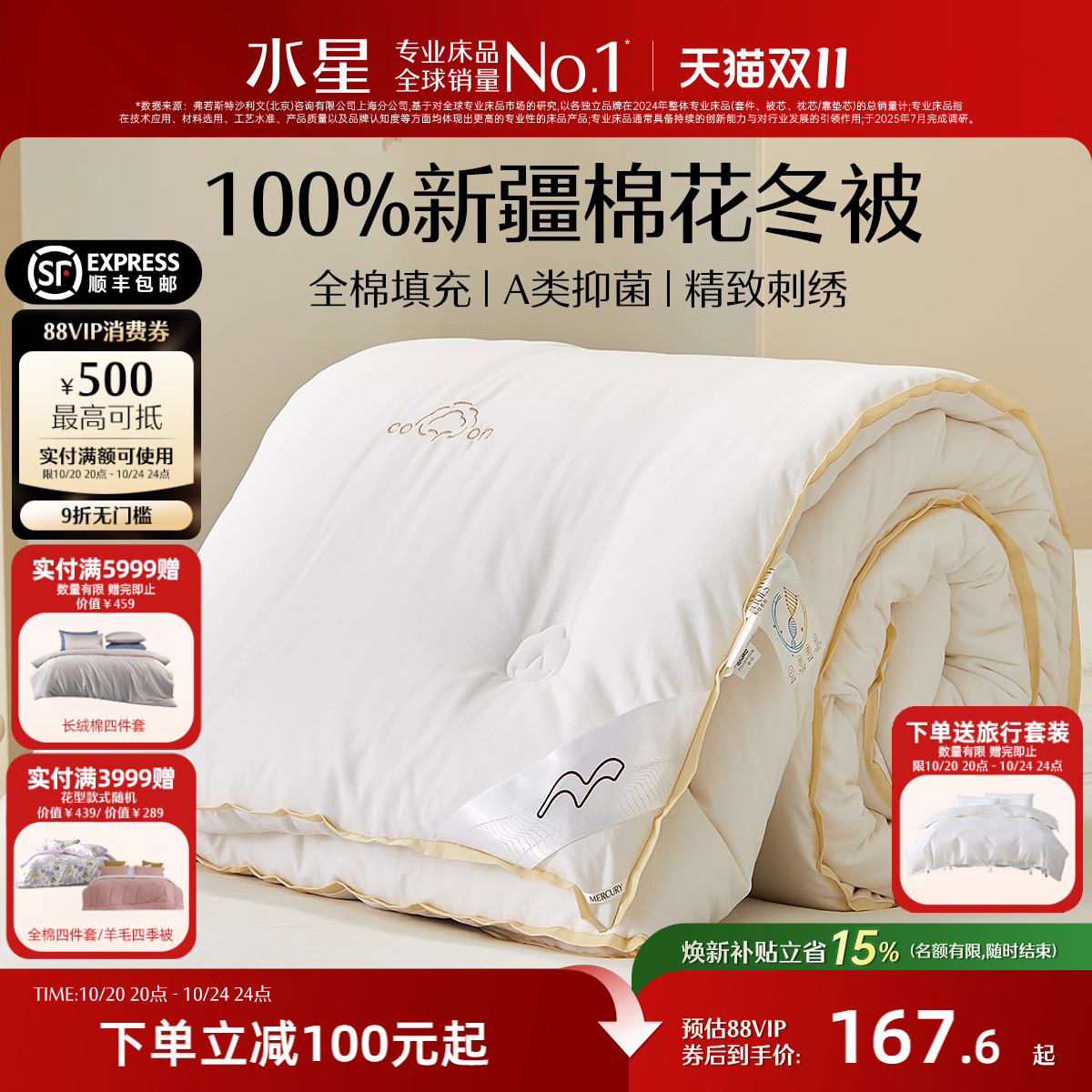 水星家纺新疆棉花被芯100纯棉全棉冬被春秋被子母被子四季通用