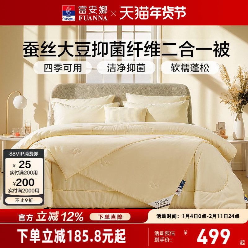 富安娜蚕丝被芯冬被二合一子母被子四季通用大豆被褥空调被春秋被