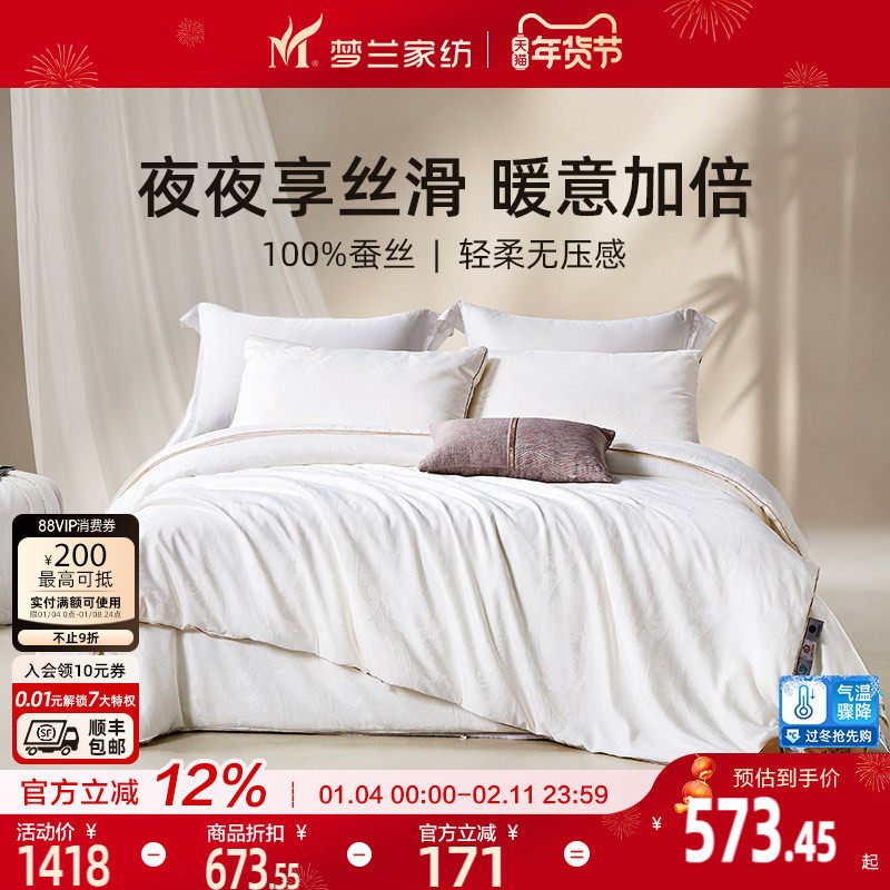 梦兰家纺100%蚕丝被全棉春秋被夏凉被冬被保暖被芯二合一子母被子