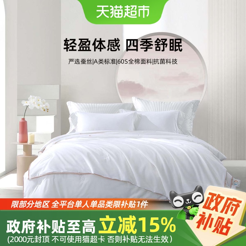 水星家纺抗菌蚕丝二合一被A类家用60S全棉子母被子被芯轻奢床品