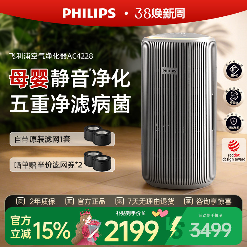 飞利浦空气净化器家用宠物除甲醛二手烟吸猫毛除异味净化机AC4228