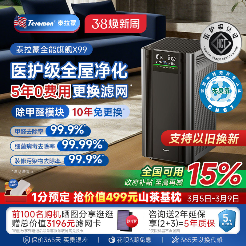 【滤网5年0费用】美国泰拉蒙X99专业空气净化器除甲醛除菌净化机