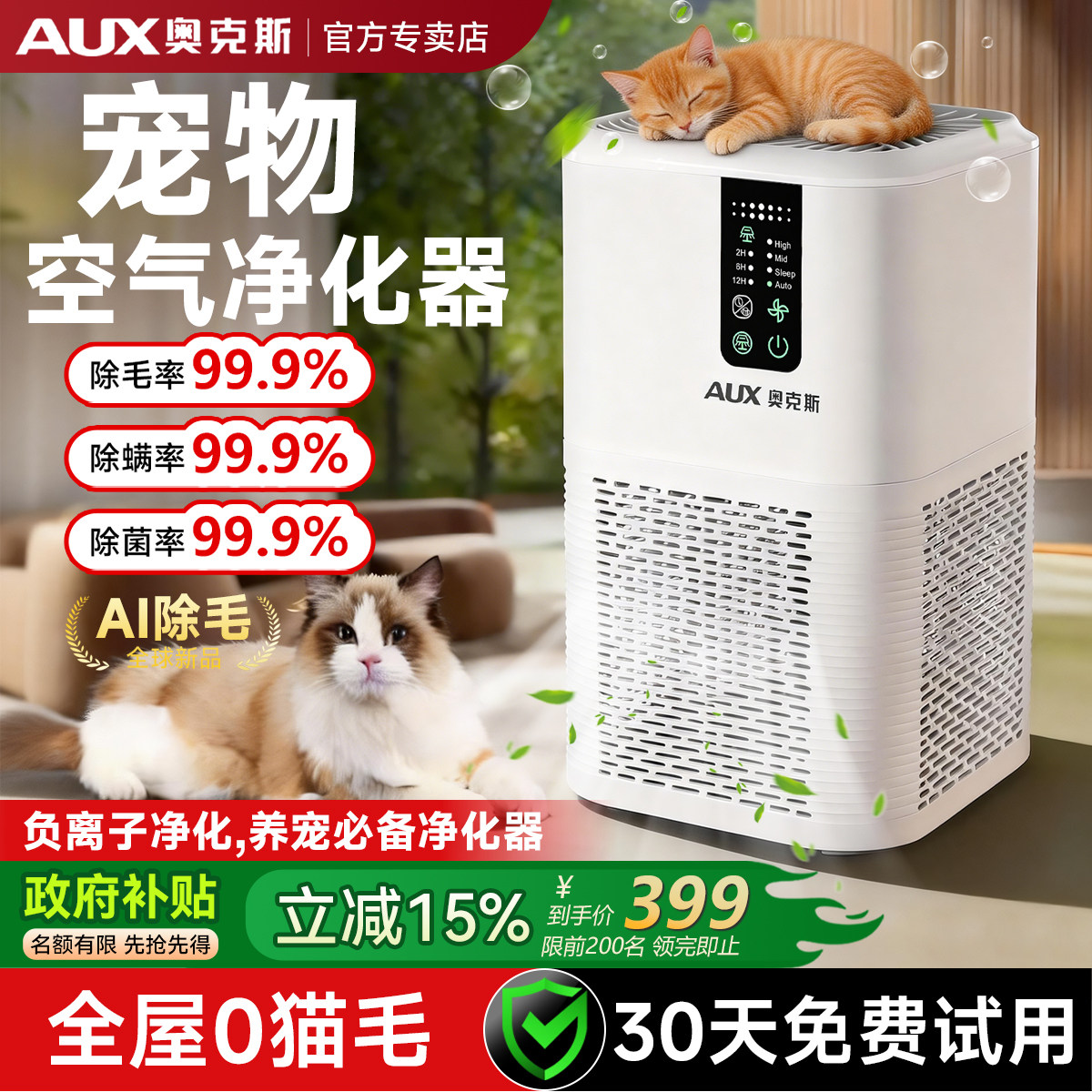 空气净化器除甲醛宠物家用室内吸猫毛浮毛烟味过敏性全自动神器机