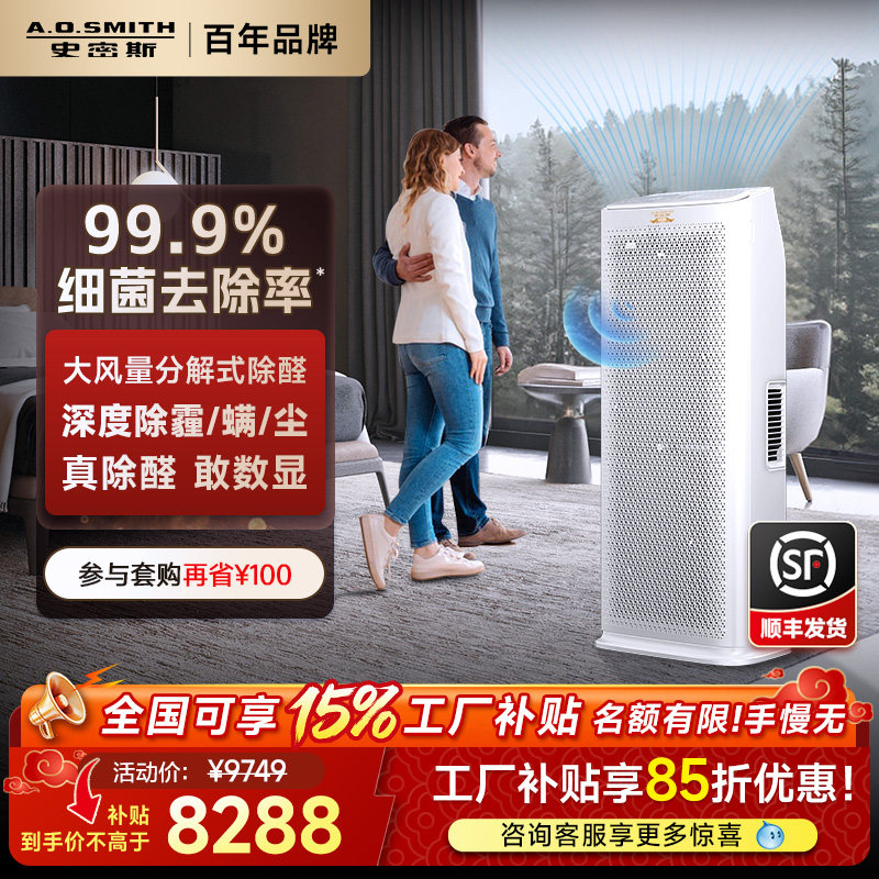 【工厂补贴15%】AO史密斯空气净化器除甲醛净化机吸烟味KJ800CWi