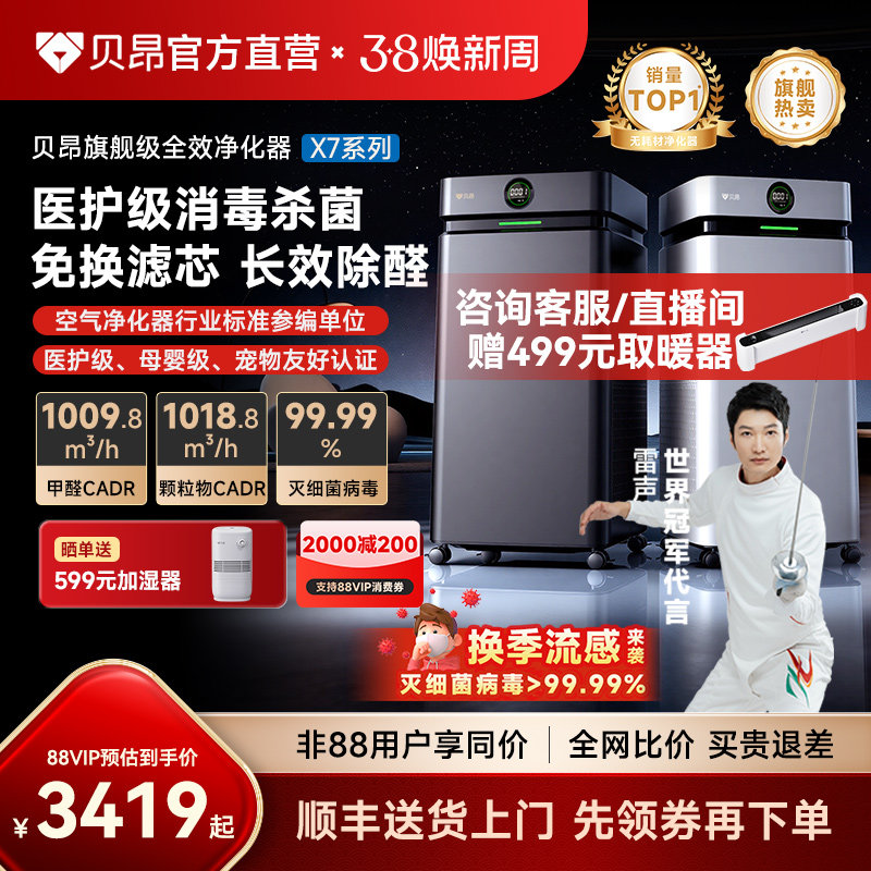 【旗舰爆款】贝昂X7P无耗材空气净化器除甲醛可水洗家用净化机