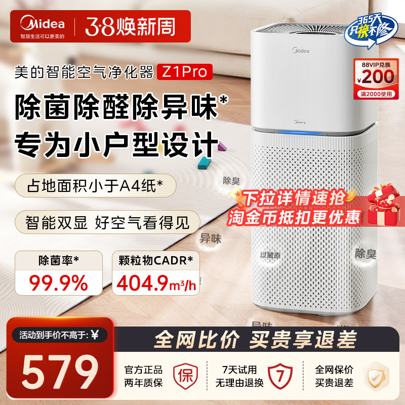 美的空气净化器除甲醛家用清新智能除菌净化机除异味除烟霾Z1 PRO