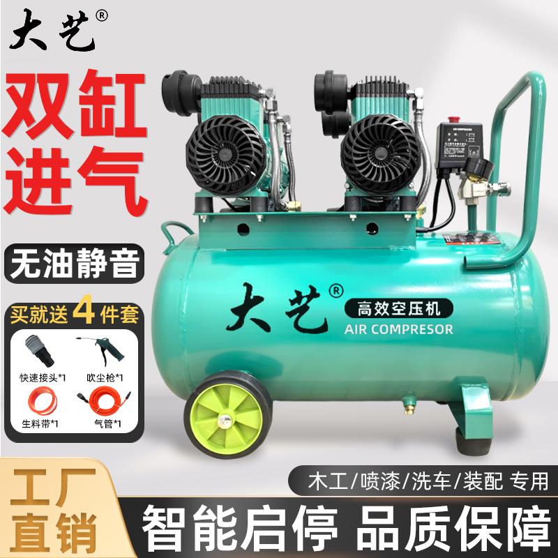 无油静音空压机小型高压气泵工业级空气压缩机220V木工喷漆打气泵