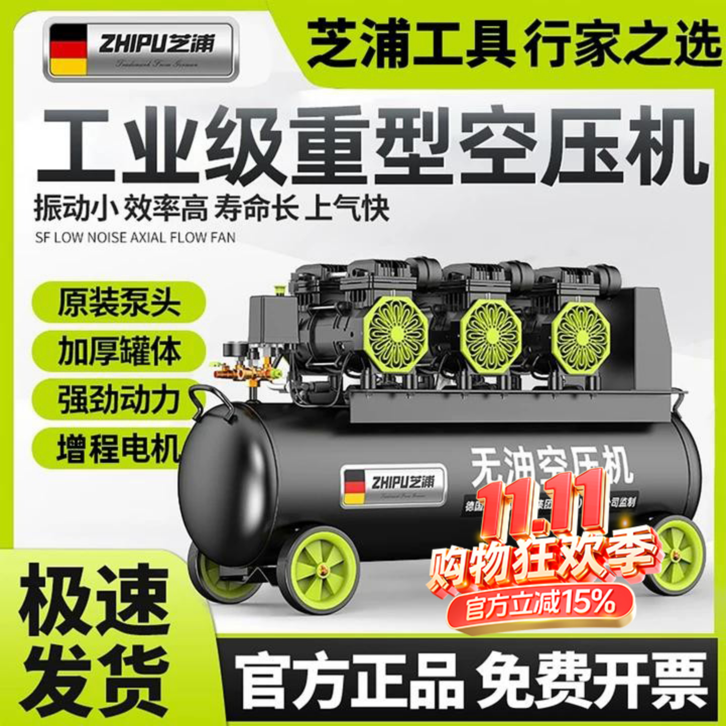 无油空压机工业级空气压缩机大型喷漆高压220V小型冲气泵静音气泵