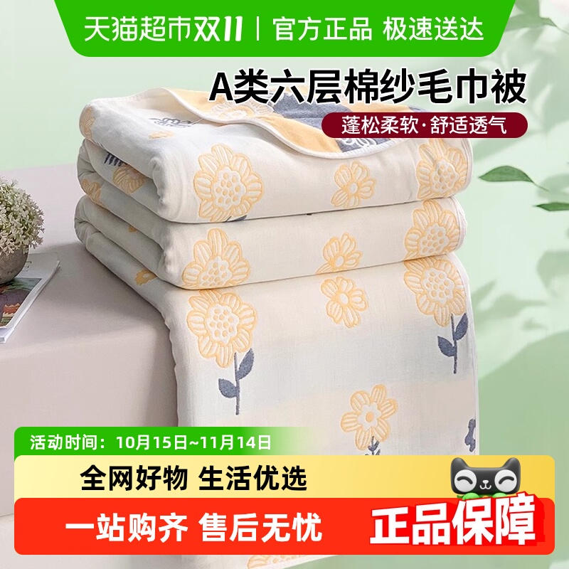 无印良品六层纱布盖毯毛毯小毯子沙发毯儿童全棉纯棉薄被子毛巾被