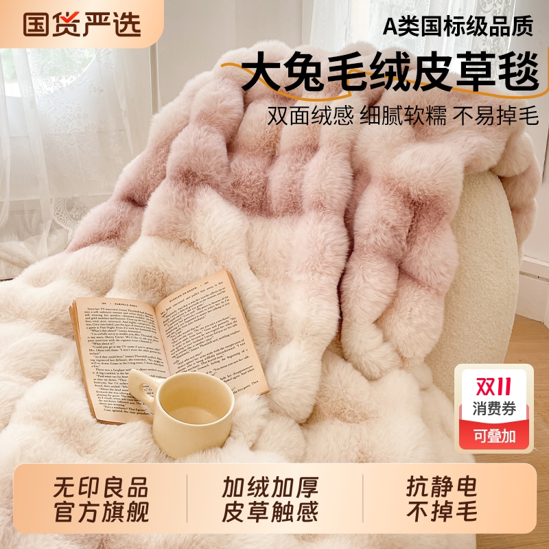 无印良品加厚兔绒毛毯被冬季加厚盖毯珊瑚绒办公室午睡沙发小毯子