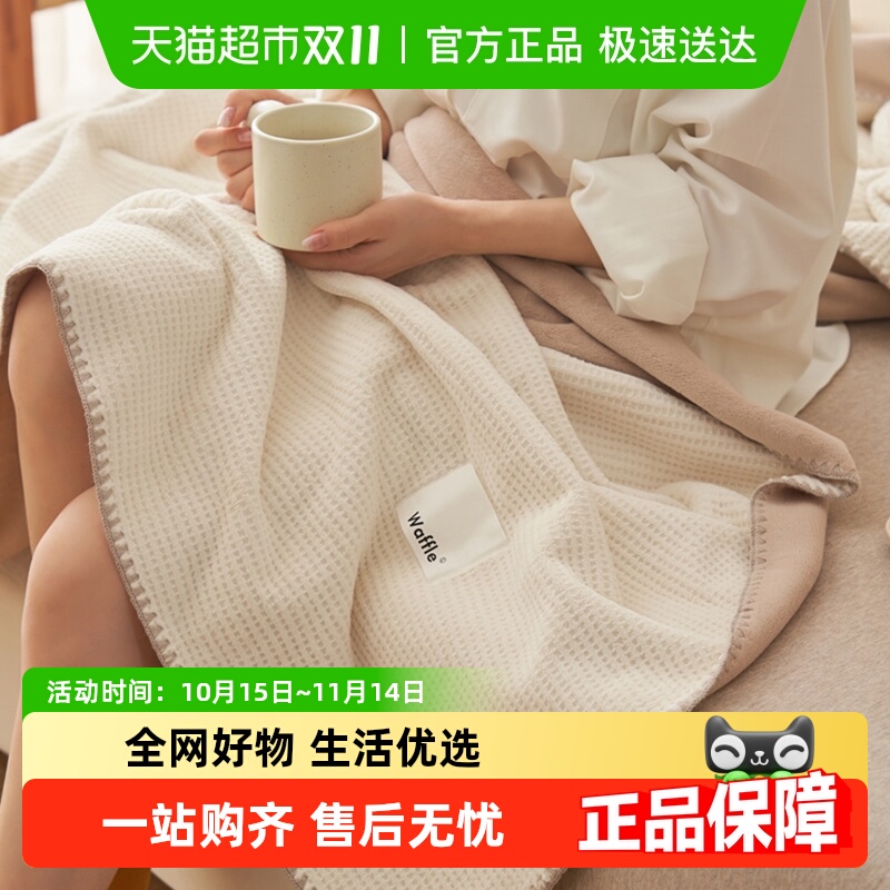 无印良品华夫绒毛毯法兰绒毯子办公室午睡毯珊瑚绒空调盖毯沙发毯
