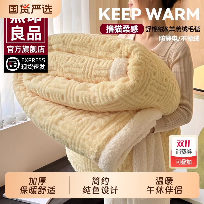 无印良品A类牛奶绒双面绒毛毯加厚冬季盖毯办公室午睡毯子沙发毯