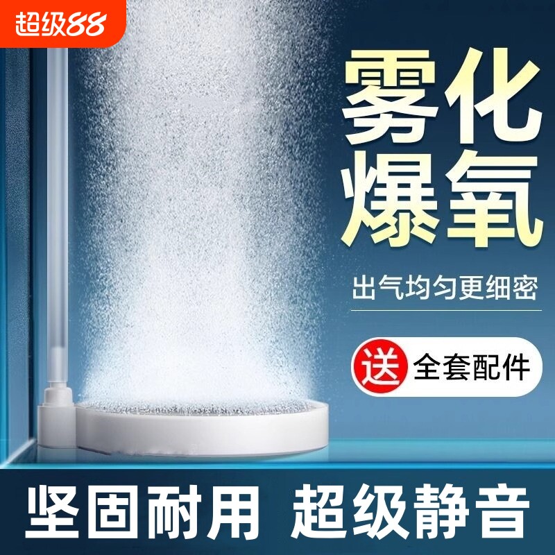 纳米气盘鱼缸气泡石雾化超静音氧气泵增氧泵气石细化器冲氧泵小型