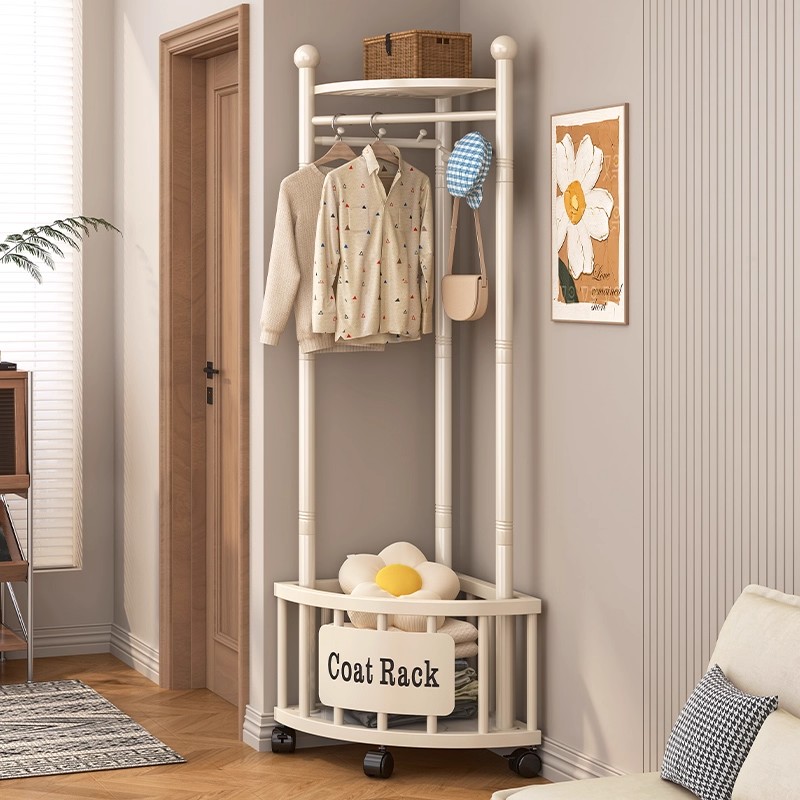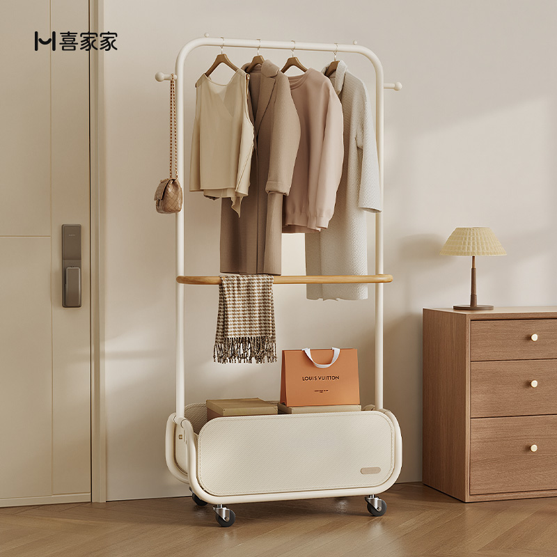 衣帽架落地卧室挂衣架简易移动立式家用客厅衣服置物挂包架收纳篮