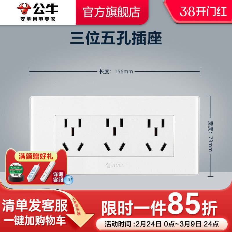 - 公牛抗电涌插座