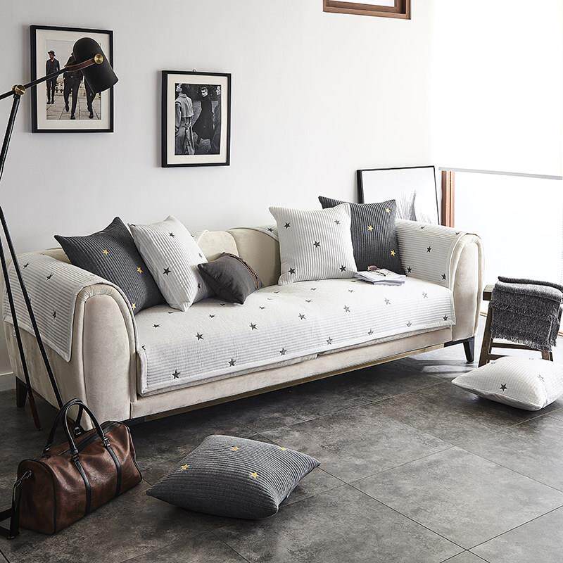 四季通用绗缝素色双纯色垫反棉面用星星含AB正两用沙发巾布艺沙发