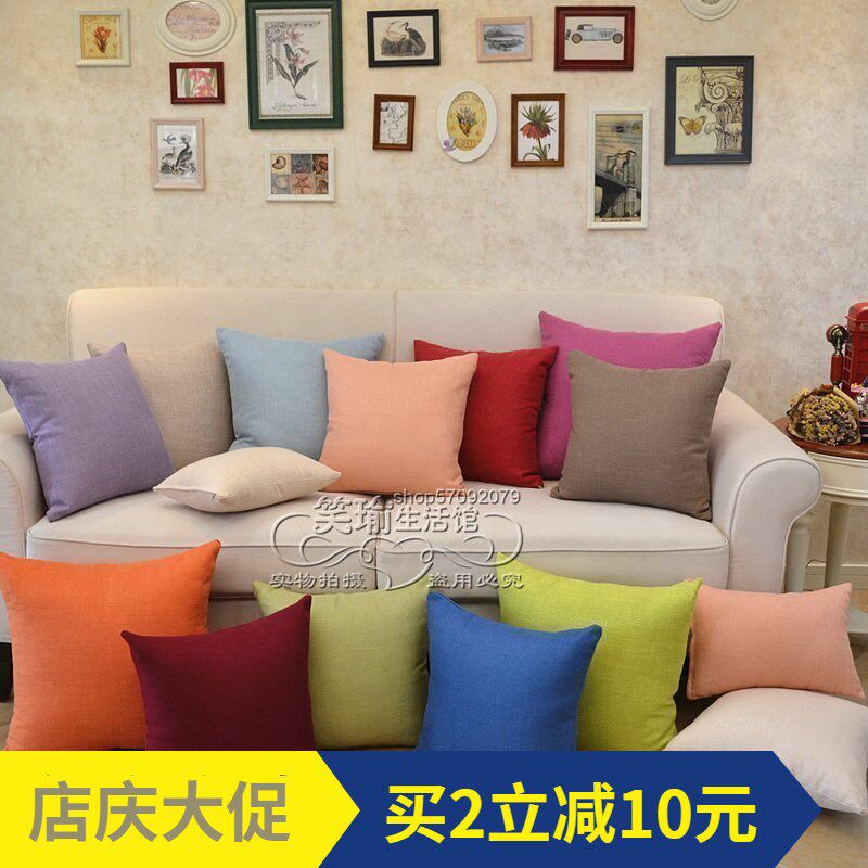 7wlo素色抱枕靠枕家用沙发客厅背棉麻布艺纯色靠垫现代简约办公室