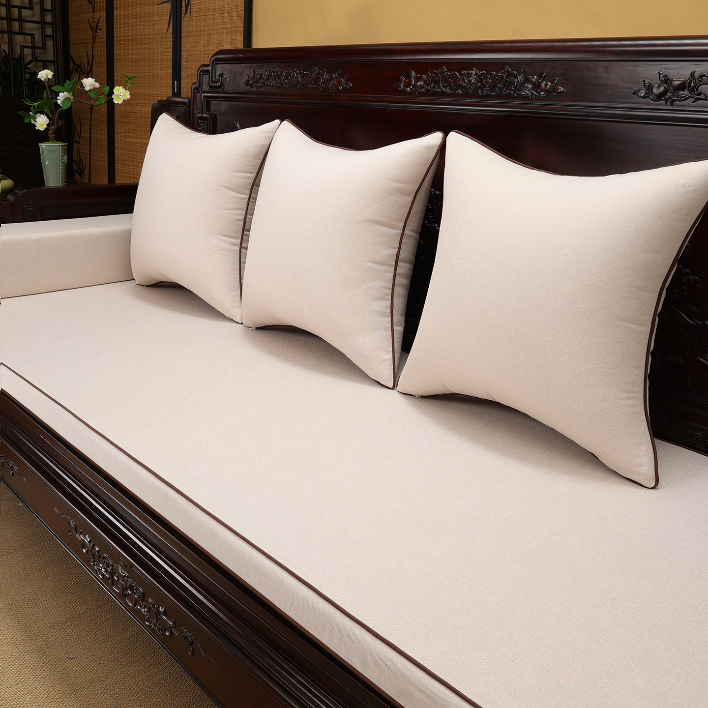 高级布艺素色沙发坐垫定制防滑罗汉床坐垫套罩定做中式实木沙发垫