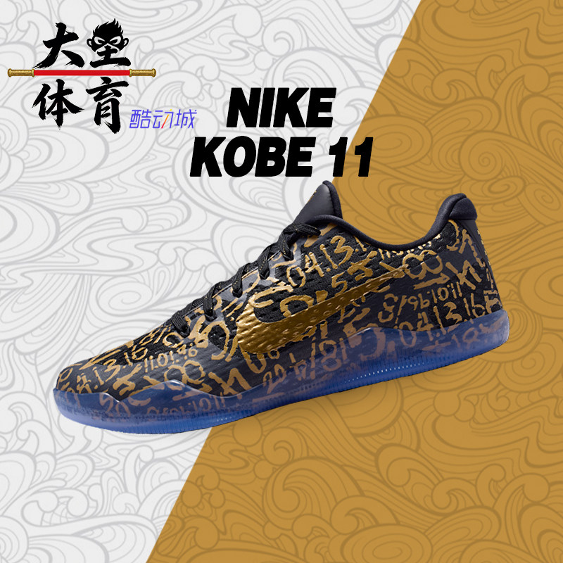 NIKE耐克 Kobe 11 黑金科比11数字印花低帮实战篮球鞋IU4902-900