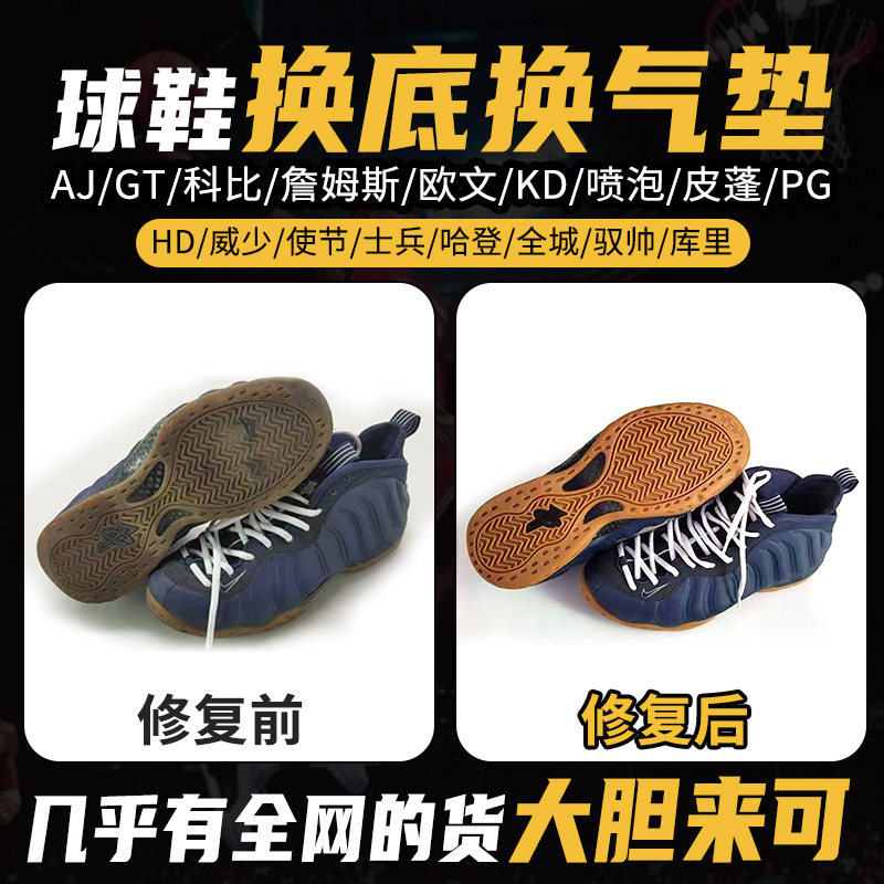 专业修鞋店铺GT科比pg喷泡aj11/32欧文5KD13篮球鞋修复换底换气垫