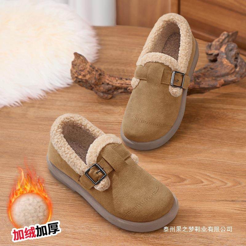 豆豆鞋女冬加绒保暖新款妈妈棉鞋防滑加厚雪地靴一脚蹬老北京布鞋