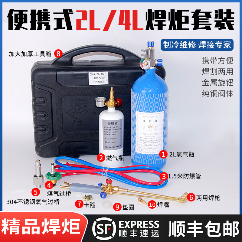 2L/4L便携式焊炬套装制冷维修工具空调铜管焊接设备氧气焊具焊枪
