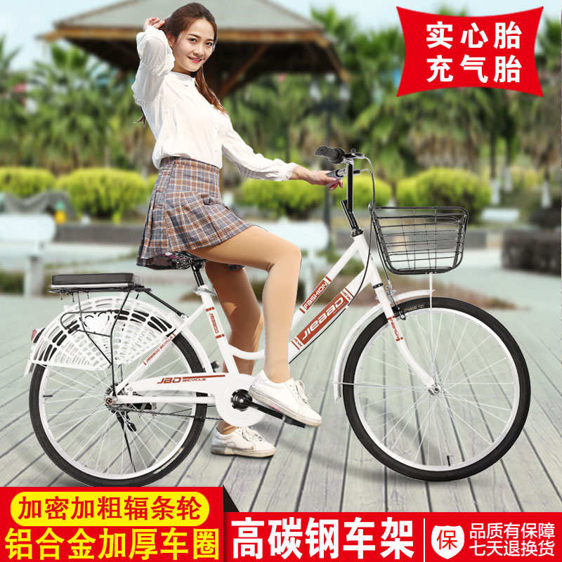 自行车男女士上班代步24寸26实心胎成人通勤中大学生轻便单车新款
