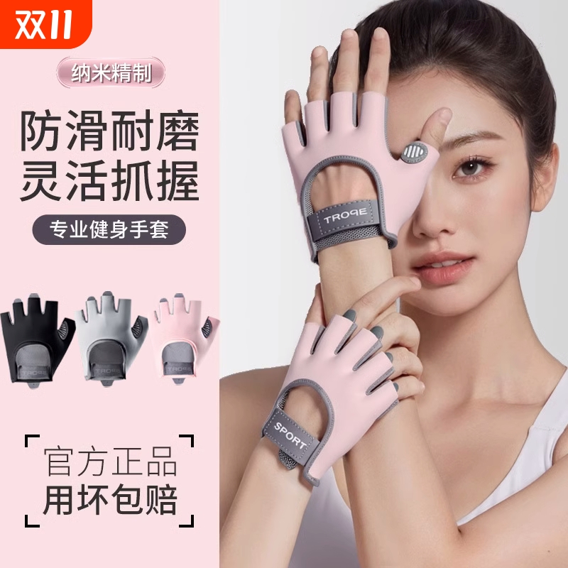 健身手套女冰丝半指运动防滑耐磨防起茧瑜伽器械男自行车攀岩轻薄
