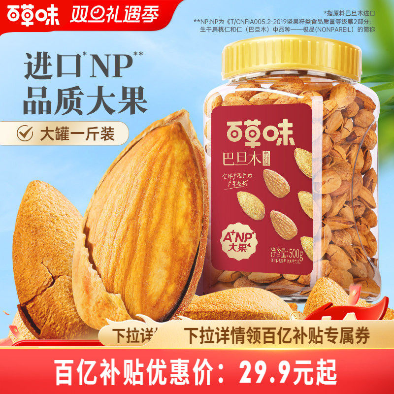 多人团-百草味巴旦木薄壳500g罐装奶油味巴坦木坚果巴达木干果