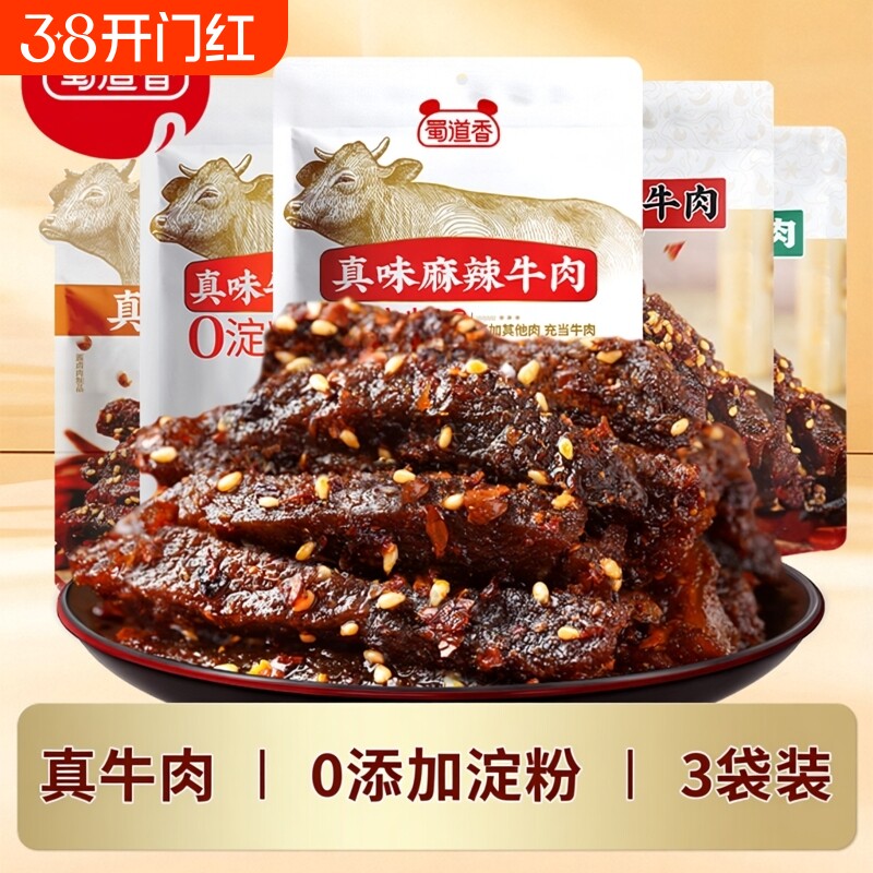 蜀道香3袋麻辣牛肉香辣牛肉干四川特产小吃开袋即食休闲肉类零食